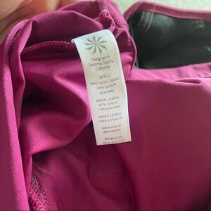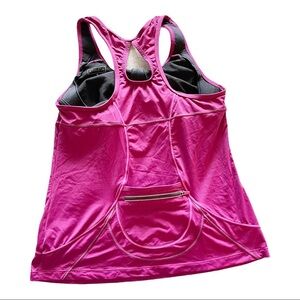 Magenta colored racerback tank top with built in stretchy banded shelf bra