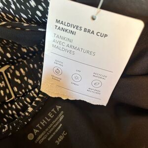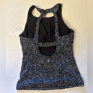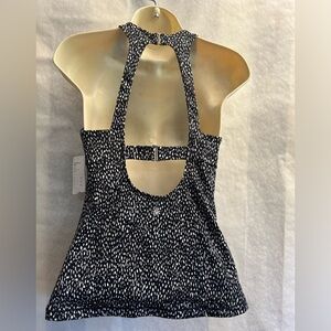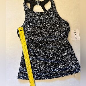 Athleta Maldives quick dry, UPF, black & white speckled design top with under wire for support & removable cups. Perfect for swim or workouts. New with tags.