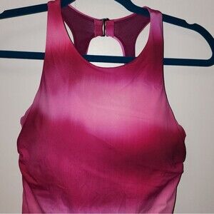 Athleta Maldives High NeckTankini - 34 B/C Surf Blur Fuchsia Swim Support Barbie