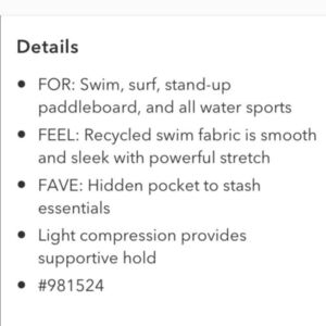 - Made from Recycled H,ECO swim fabric is sleek with powerful stretch