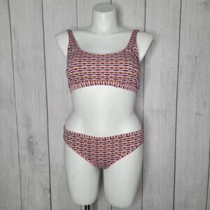 Athleta Marbella Scoop Bikini Set Pink Black Orange Geometric Size XL