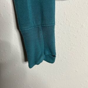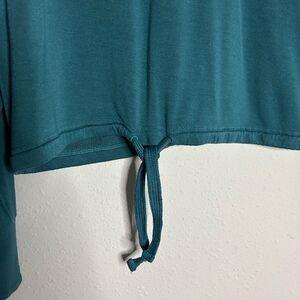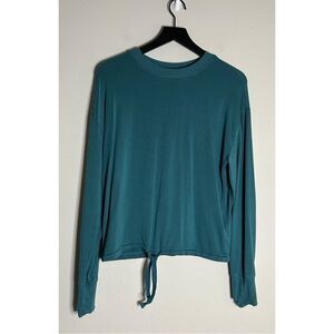 Marina Crew Neck Sweatshirt in Borealis Green from Athleta. Tie waist. Size XS. Approximate flat lay measurements- Bust: 20” across from armpit to armpit. Length: 24”. Some light wear and fading (see photos) but otherwise in good preowned condition with no tears or stains.