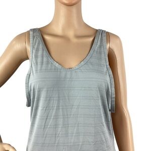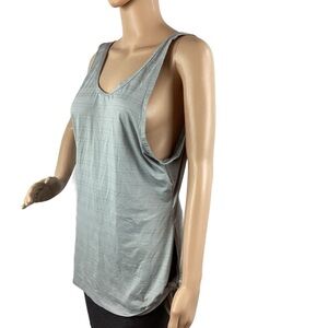 Tags: Athleta tank top, workout tank, tie side tank, open back top, gray activewear, yoga layer, athletic top, gym wear, Athleta size M, fitness fashion