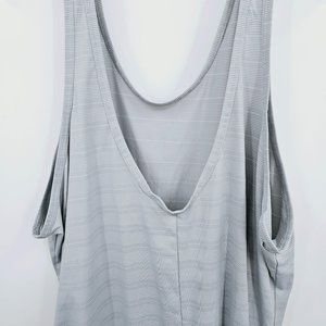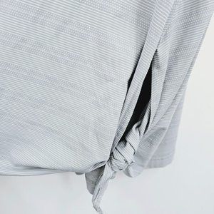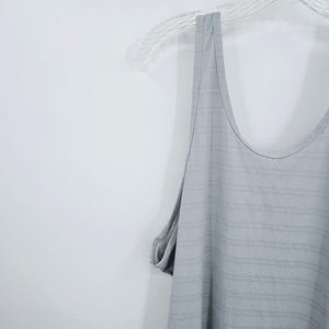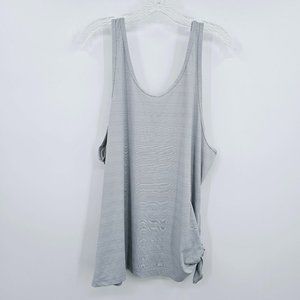 Athleta Max Out Tank Top XL Blue Grey White Stripe Side Tie Dip Back Athleisure