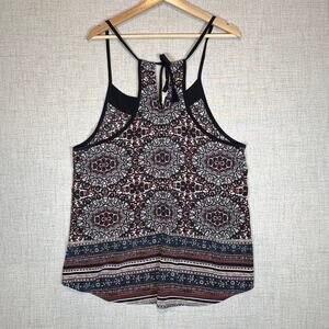 Athleta Medallion Dunes Tank Top Women's L Tie Racer Back Boho Keyhole Tassels