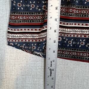 Athleta Medallion Dunes Tank Top. Women's size large. Designed with a split neckline, solid navy yoke, and adjustable back tie straps with tassel accents. Lightweight and breathable fabric makes it perfect for warm-weather wear, yoga retreats, travel, or casual days out.
