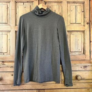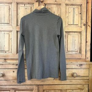 Athleta Medium Brown Athletic Turtleneck Shirt Metallic Gold Details Textured