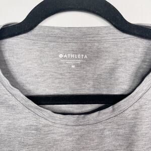 Athleta Medium M Gray Essence Pleated Tee Side Ruched Short Sleeve Round Neck