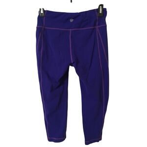 Athleta medium purple capris. Freshly washed and hung to dry. 88% nylon Souplex 12% Lycra. Gusset 100% polyester CoolMax.