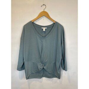 Athleta Medium Sage Green Embody Twist Front Top Crop Length 3/4 Sleeves