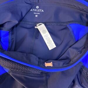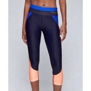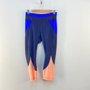 Athleta Medium Trissential Crop Leggings Triathlon Workout Colorblock Blue/Peach