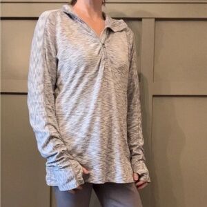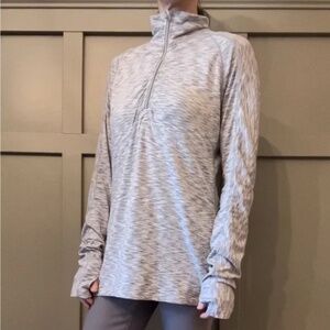 Athleta Mendoza Half Zip Running Pullover Spacedye Gray Ruched