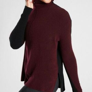 Athleta Merino Wool Blend Turtleneck Pullover Sweater Mixed Media High-Low.