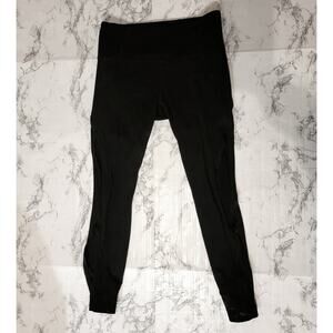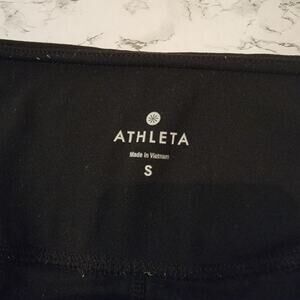 Athleta Mesh Cut Out Salutation 7/8 Black Leggings. Size small. Excellent condition, minor wear on seam near cut out on one leg (see pictures). Black 7/8 ankle length leggings. High rise waist. Mesh panel accents & cut out accents.