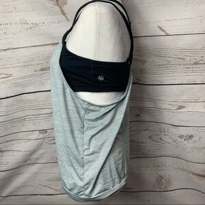 The barely-there yoga tank with a relaxed, semi-sheer layer over a low-support bra with a double-cross strappy back.