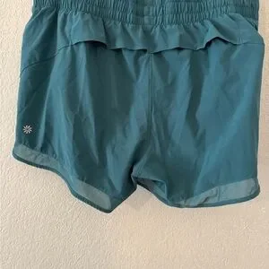 Experience ultimate comfort and style with Athleta's blue athletic shorts, designed with a lightweight fabric and an elastic waistband for a perfect fit. These shorts feature a relaxed, loose fit with a curved hem, ideal for workouts or casual outings. Enjoy the simplicity of a solid blue color, making them a versatile addition to your activewear collection.