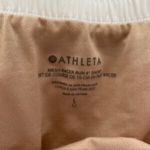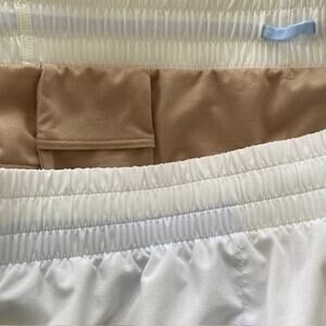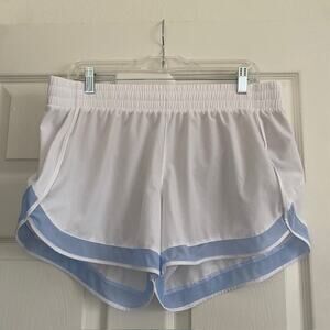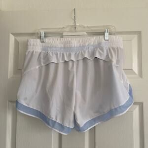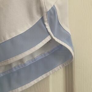 Athleta Mesh Racer Run 4" Short White w/Blue Trim Zip Pocket Women's Large