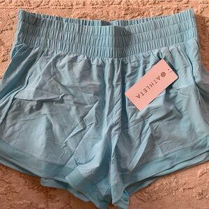 High rise shorts with mesh design. Features targeted ventilation, hidden zip pocket and built-in brief. New with tags. Fits True to size.