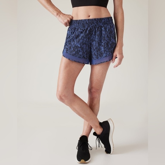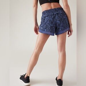 Athleta Mesh Racer Run Short 4” Small blue snakeskin