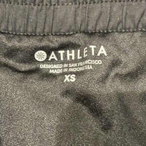 Athleta Mesh Racer Run Short 4" Womens XS Black Zip Pocket Elastic Waist Logo