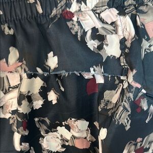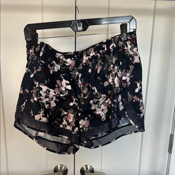 Navy, pink, and cream abstract pattern short. There is some wear along the back noted in the photos, but still tons of life left in them!