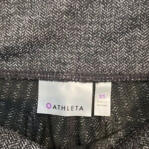 Chic and versatile textured herringbone leggings by Athleta. The Metro legging features two jegging style back pockets and two seamed front pockets. Made of a thicker material they’re perfect from the gym to downtown. In excellent condition, like new, size Extra Small XS