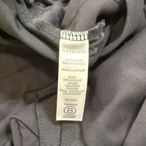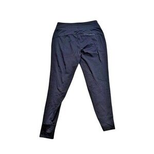 The Athleta Metro Jogger Pants in black are designed for women in size small, featuring a pull-on closure, tapered leg style, and a 26-inch inseam. Made from a comfortable nylon blend material, these athleisure pants are ideal for activities such as gym training, yoga, and running. With zippers and pockets for added convenience, these jogger pants combine style with functionality, making them a versatile and practical choice for activewear.