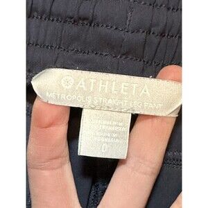 Athleta Metropolis Straight Leg Pants Womens 0 Navy Blue Elastic Waist Zip Ankle.