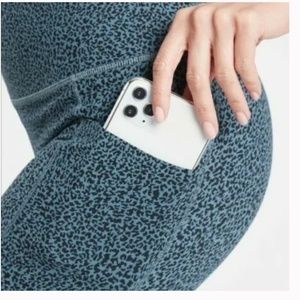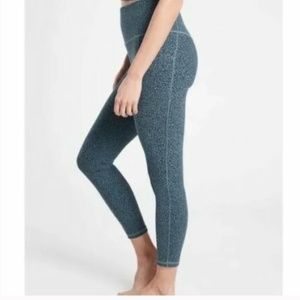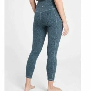 Athleta Micro Cheetah Blue Salutation Stash Pocket II Textured 7/8 Tights XXS