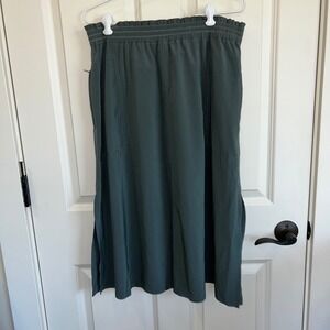 Athleta Midi Skirt Lightweight Activewear Packable Skirt Side slits, Zippered Side pockets and zippered back pockets Elastic waistband Size: Large Color: Greenish gray B17