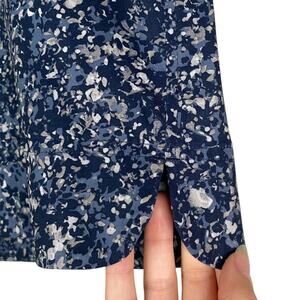 This skirt by Athleta is a pull on style with elastic waist and drawstring in the front. Skirt has side and back pockets, dolphin/rounded hem with split sides and built in mesh shorts. No flaws to note, skort is in excellent, like new condition!