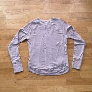 Material is lightweight and ultrasoft, in a pale lavender color.