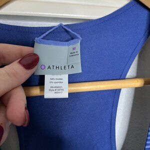 Athleta Reversible Bellisima Dress in Deep Indigo - it's a size Medium and NWT. One side is micro stripe, the other solid blue.
