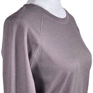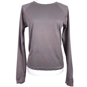 Athleta Momentum Seamless Ribbed Top Size Medium Long Sleeve Shimmer Beige EUC