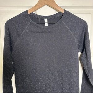 Athleta Momentum XS Seamless Shimmer Top Black Women’s Metallic Active Feminine