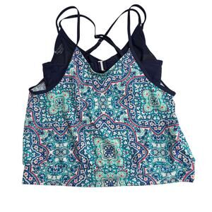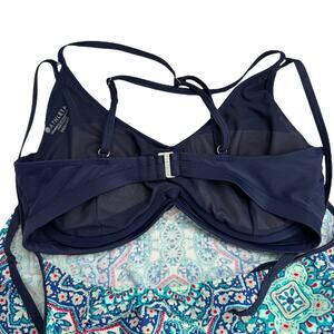 Athleta Monaco Blousy Tankini Swim Top Underwire Bra Blue Red 36D/DD