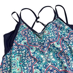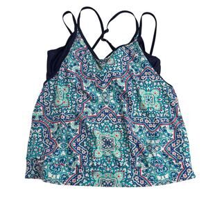 Athleta Monaco Blousy Tankini Swim Top Underwire Bra Blue Red