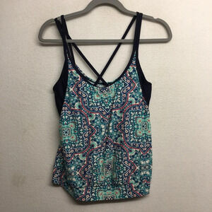 Athleta Monaco Blousy Tankini TOP Size 34 D / DD Navy Blue Swimwear