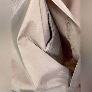 Durable Water Repellant and Packs into a hidden pocket that converts into a cinch backpack.