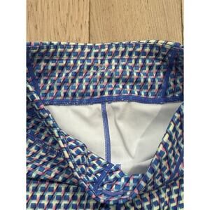 These Athleta Multi Vivid Sonar Capri Running Leggings are perfect for any active woman in size XS. The geometric pattern in blue adds a touch of style to these athletic leggings. The pull-on closure and compression area in the leg provide comfort and ease of movement during gym and training sessions, yoga, and running.