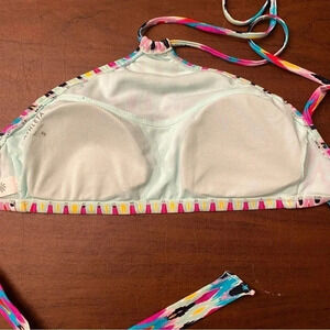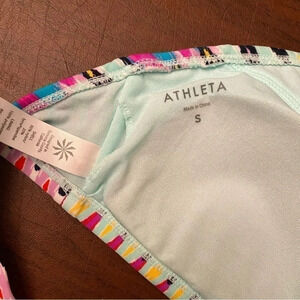 Athleta bikini top size small. Super cute multicolor halter style top, pads included. Excellent condition. Smoke free home.