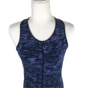 Purple/blue multicolored racerback tank top with u-neck and slight high-low style. In good pre-worn condition. There are no stains. Material is worn from washing. Super cute!