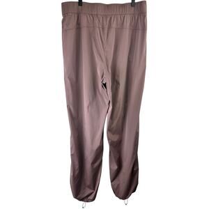 Street style inspired athleisure water repellent, wind resistant pants from Athleta. Women’s size Medium Tall. 33.5” inseam. Purplish mauve color. Recycled material. UPF40+. Adjustable bungees at the hem. Breathable. Packable. New with tags.