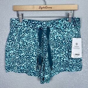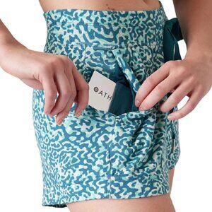 Athleta NWT Balance Clouded Leopard 4” Shortie Shorts, Teal Blue M - Stretchy