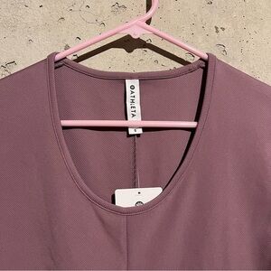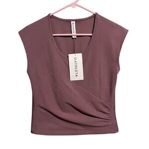 Athleta NWT Bayview Tee Shirt Mauve Short Sleeve Faux Wrap Workout Top Women’s S