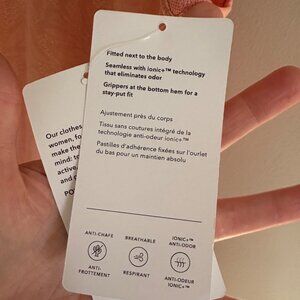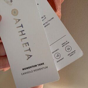 This Athleta Momentum Tank in a soft coral rose color has a subtle textured floral pattern. This style is known for its seamless construction, breathable feel, and Ionic+ anti-odor technology that keeps the tank fresh during workouts. Designed to fit close to the body with a racerback cut for full range of motion. Features gripper detail at the bottom hem to keep the tank in place while moving.