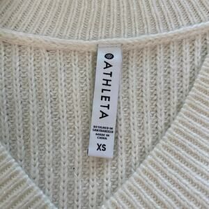 Athleta NWT Shasta V-Neck Sweater Wool Blend Ribbed Knit Size XS Dove Tunic