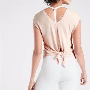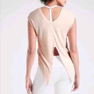 Athleta Natarit Twist Back Top Pink Sleeveless V-Neck Yoga Lounge Tee Small.