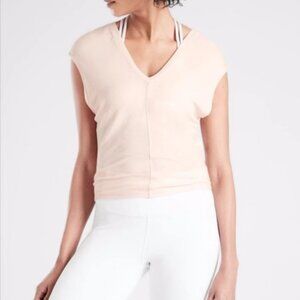 Athleta Natarit Twist Back Top Pink Sleeveless V-Neck Yoga Lounge Tee Small