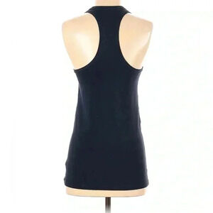 Excellent used condition. Navy scoopneck tank. Measurements: 30” at bust & 26.5” long. 85% polyester & 15% spandex. Machine wash cold. Tumble dry low.